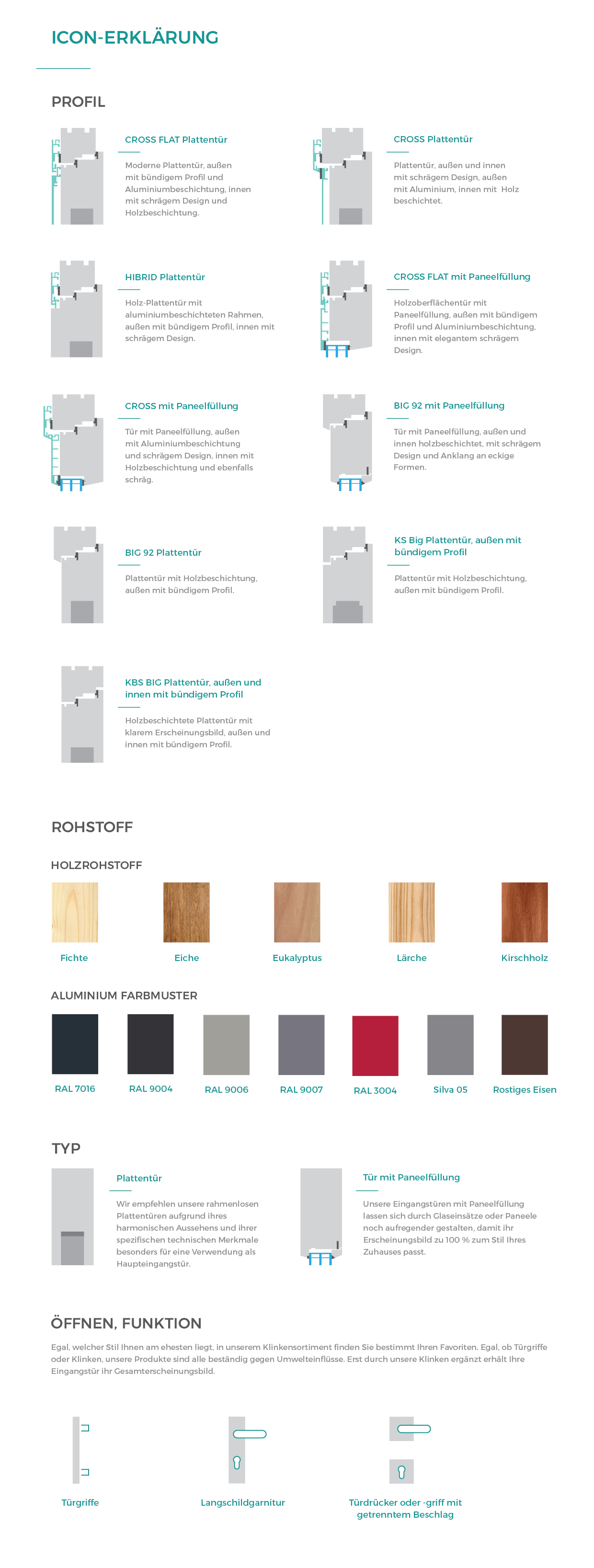 Unsere Türen mit Plattenkonstruktion werden besonders behutsam und aus sorgfältig ausgewählten Rohstoffen hergestellt, damit Sie qualitativ hochwertige und dauerhafte Eingangstüren erhalten. In den Plattentüren finden sich auf beiden Seiten Dampfsperren und eine sie rundherum umgebende Metallversteifung, so können wir unseren Kunden garantieren, dass ihre Eingangstür lange hält und gut funktioniert. Auf den Außen- und den Innenseiten der Türen ist auf dem aus mehreren Schichten bestehenden Rohling eine ihresgleichen suchende Oberfläche zu sehen, die je nach ausgewählter Holzsorte aus Fichten-, Lärchen-, Eichen- oder sogar aus dem ganz speziellen Eukalyptusholz bestehen kann. Wenn Sie sich nach einer Tür mit klarer Linienführung sehnen, wählen Sie eine Eingangstür mit Plattenkonstruktion, das ist eine rundum sichere Sache. Plattentüren ermöglichen auch solche Bearbeitungsverfahren wie z. B. Ätzen, so dass sie sich sowohl mit Linien als auch mit speziellen Muster verzieren lassen, wobei die Glasausschnitte auch mit Ausätzung gestaltet werden können.